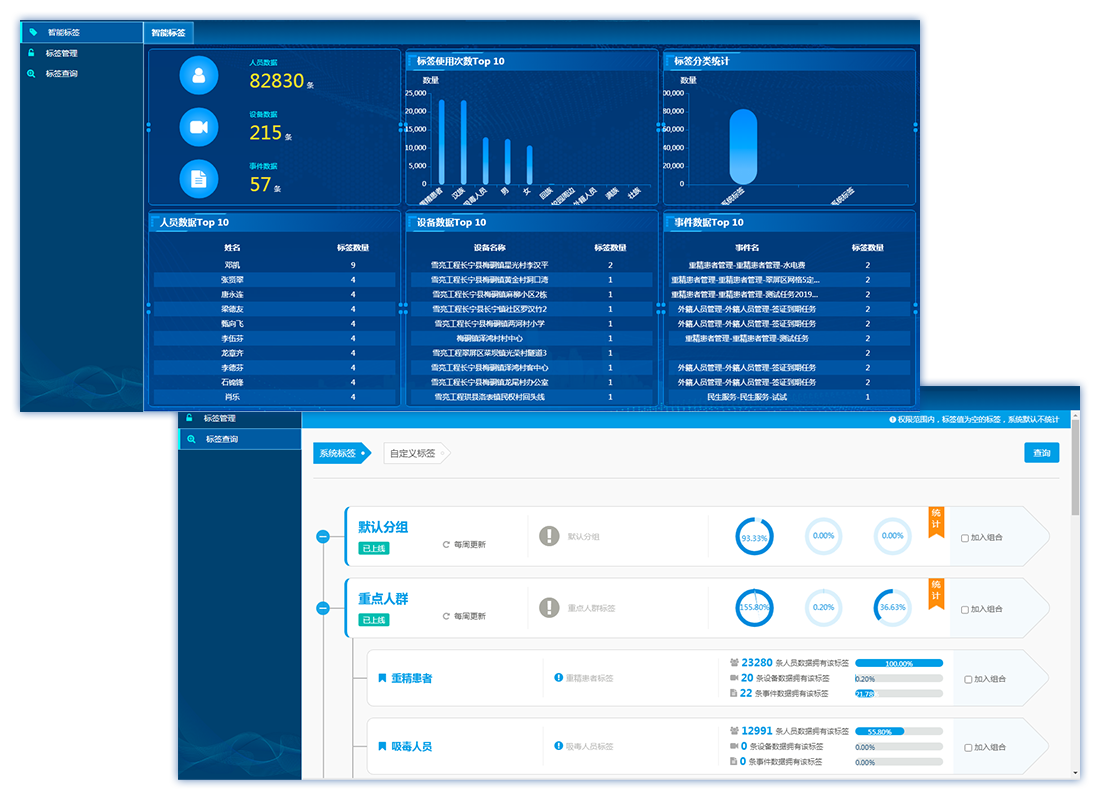 智能标签平台是公安信息化“大整合、高共享、深应用”的需要,通过构建基于大数据技术平台的标签管理体系,实现通过标签产出的数据模型、算法,不断创新标签的应用,推动公安大数据知识智能化进程,提炼出有业务意义的业务规则,实现自助式标签研判体系,简化自主创新业务分析流程,挖掘深层业务信息,从而为公安实战提供帮助。